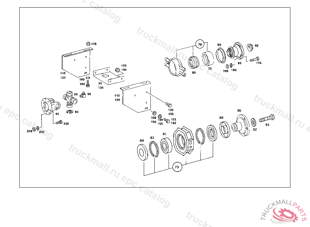 PROTECTIVE CAP FOLLOWER FLANGE, INTERMEDIATE BEARING, BALL BEARING IN RUBBER SEAT