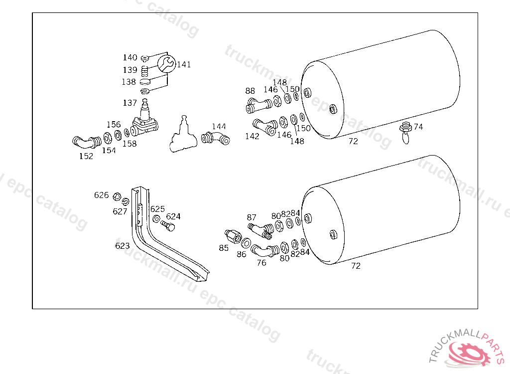 LINE FROM TWO-CIRCUIT PROTECTIVE VALVE TO OUTSIDE AIR RESERVOIR 15X1.5 MM, USED WITH HYDRAULIC BRAKE,UP TO CHASSIS 588185