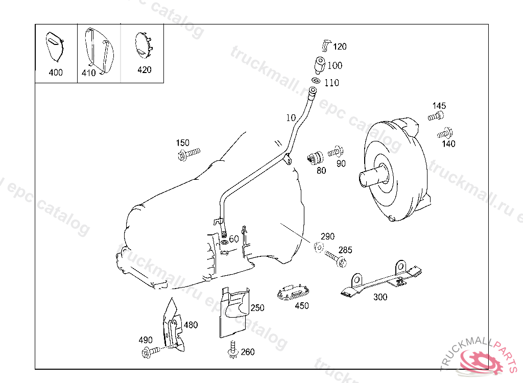 27 MERCEDES-BENZ AUTOMATIC TRANSMISSION - 125 ATTACHED PARTS FOR TRANSMISSION, OIL FILLER PIPE