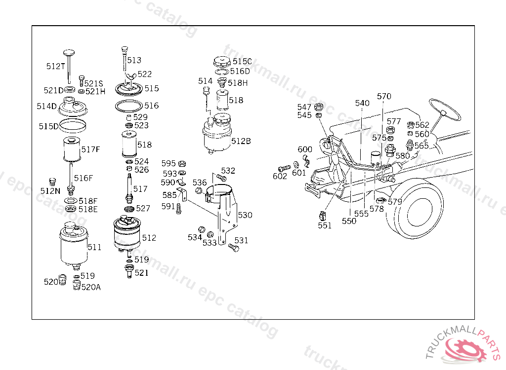 LINE FROM STEERING TO OIL TANK, 10/20 FROM IDENT NO. 4 213497, 50/60 FROM IDENT NO. 4 212523 ALSO INSTALLED ON 523209-599999