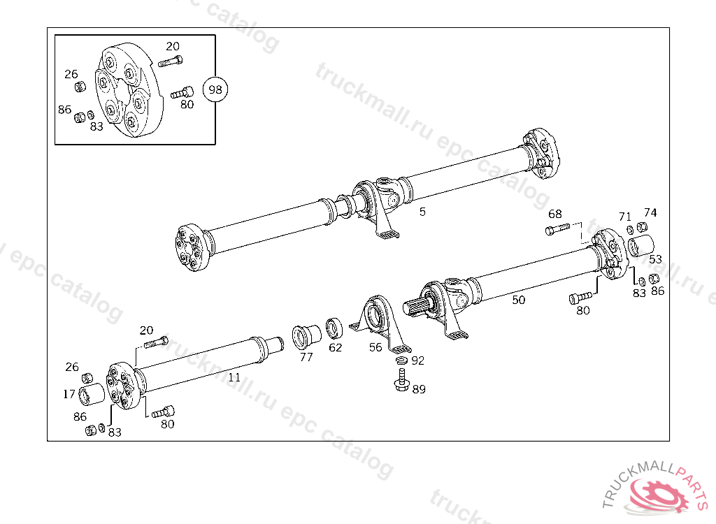 FLEXIBLE JOINT DISC PARTS KIT,FRONT, FROM MODEL YEAR'96 TO BE ADAPTED DURING ASSEMBLY