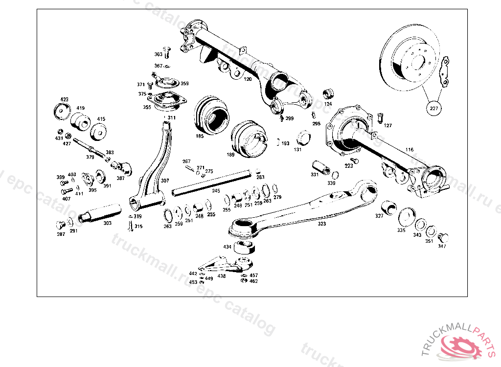 REAR AXLE , ON MODELS 111.024,025 UP TO CHASSIS 003465 EXCEPT FOR:003458,003462,003464