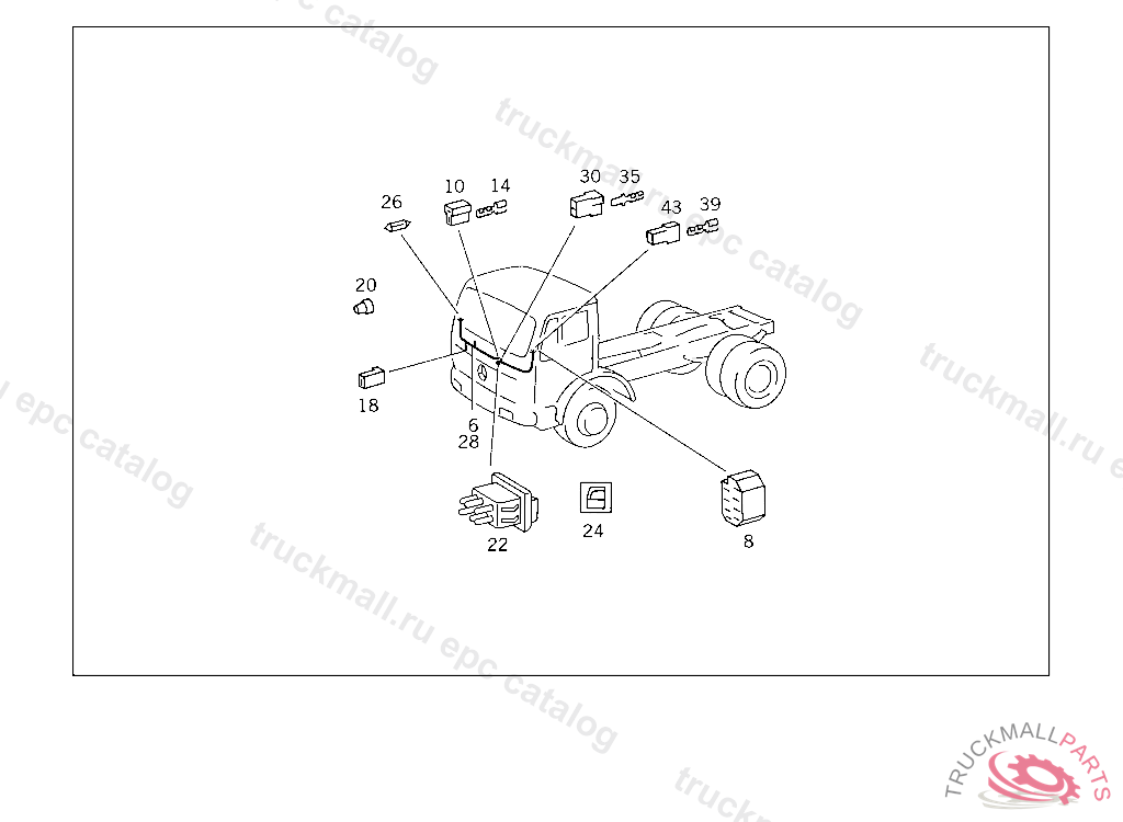 PIN BUSHING HOUSING. PLUG HOUSING FROM CHASSIS/CAB CONNECTION POINT TO TACHOGRAPH
