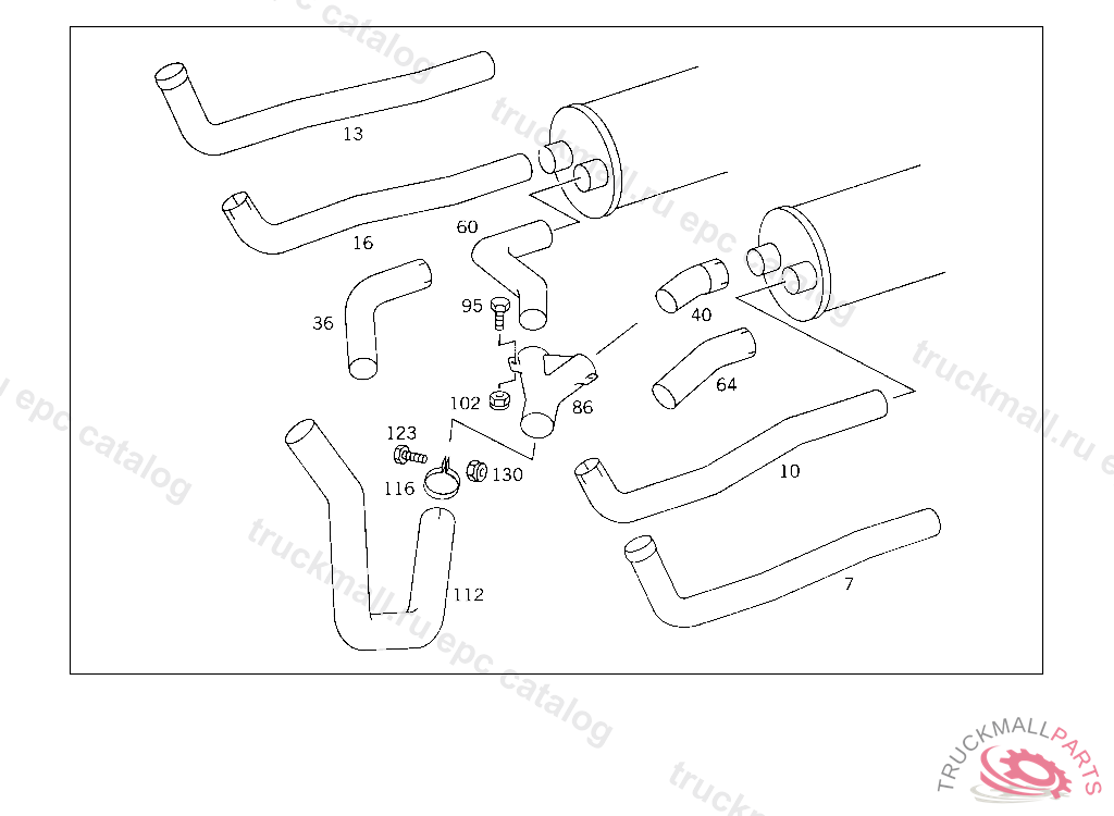 EXHAUST PIPE FRONT,REAR RIGHT PART, 015 5 006740 016 5 005657 017 5 007849 111 4 946456 112 4 947214 113 4 948529 116 4 965407 117 4 9463785 129244