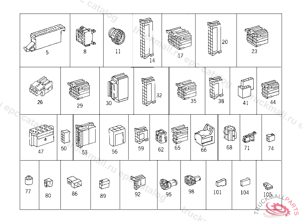 PIN BUSHING HOUSING. PLUG HOUSING FROM CHASSIS/CAB CONNECTION POINT TO TACHOGRAPH