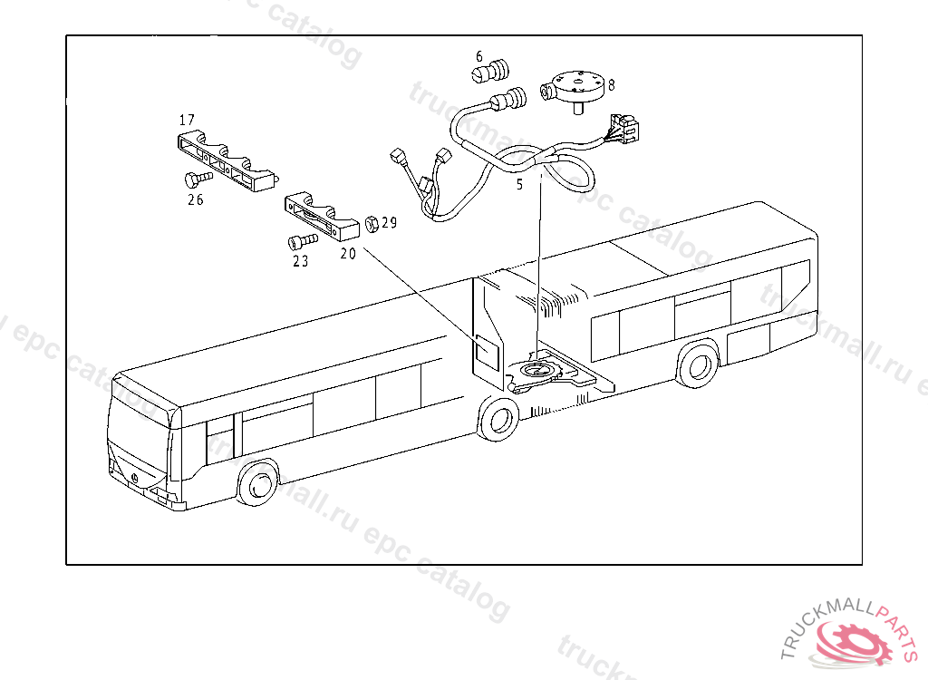 BRACKET CABLE HARNESS TO BELLOWS BRACKET, ON VEHICLES HAVING NO MERCEDES BENZ BODY FROM IDENT NO. 057464 FOR USE WITH MERCEDES-BENZ BODY FROM IDENT NO.: 057603082747