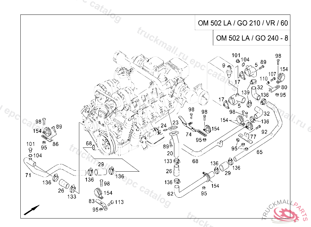 MOLDED HOSE ARC REDUCED 90 DEGREES 65/60MM, Replaced By: A0025012082