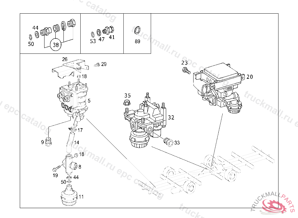 PROPORTIONING VALVE FRONT AXLE BRAKE CIRCUIT 16.07, TO VOSS 230/232, Replaced By: A0054296944