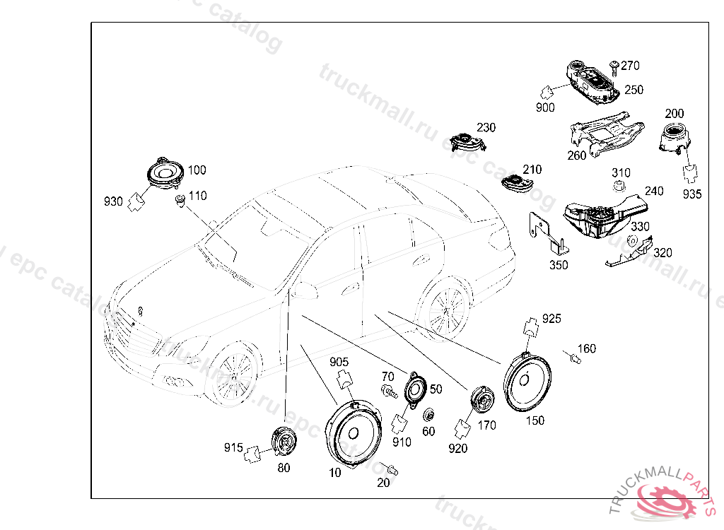LOUDSPEAKER. LOUDSPEAKER RIGHT REAR DOOR, FIRST EXHAUST STOCK OF OLD PARTS UP TO IDENT NO. A 02539020110823, Replaced By: A2128200076