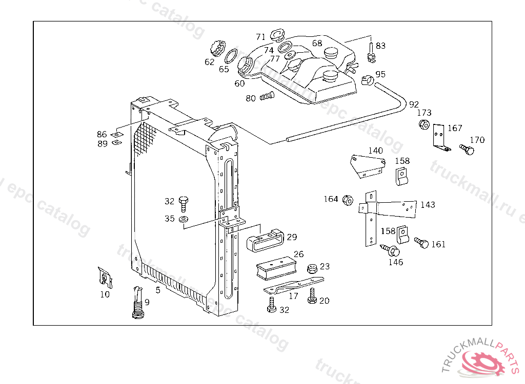 RADIATOR , FIRST EXHAUST STOCK OF OLD PARTS UP TO IDENT NO. 5 906164, Replaced By: A6505010601
