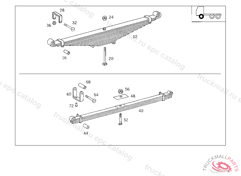 FRONT SPRING (TRAPEZOIDAL SPRING),NUMBER OF LEAVES: "14", STATE IDENT NO. WHEN ORDERING