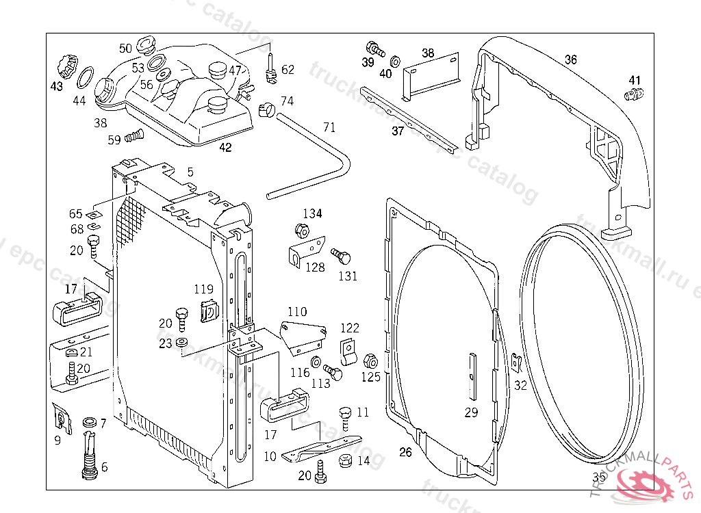 RADIATOR , FIRST EXHAUST STOCK OF OLD PARTS UP TO IDENT NO. 5 752618, Replaced By: A6555002103