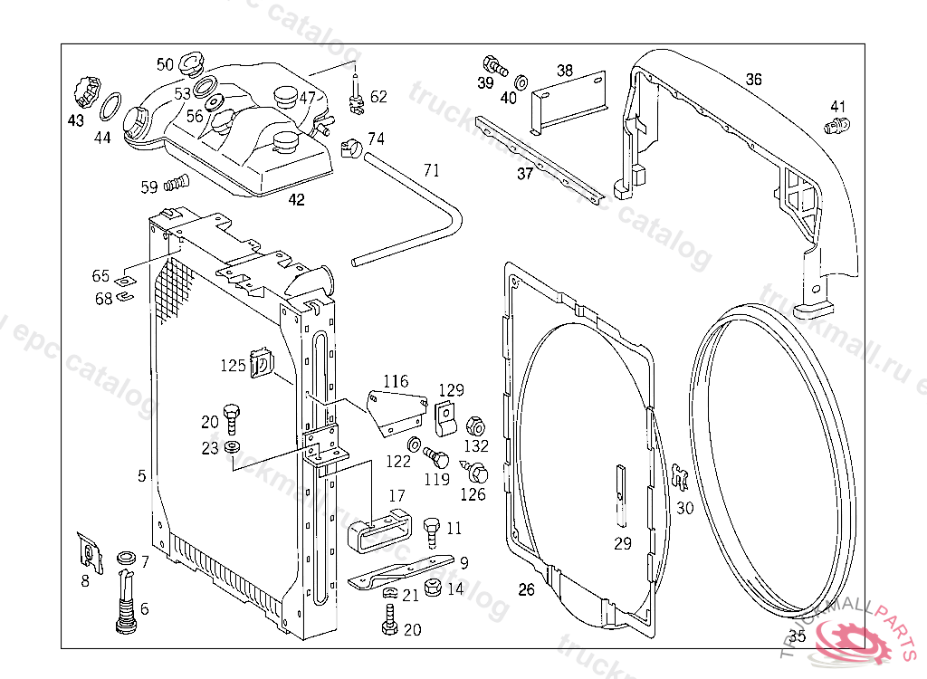 RADIATOR , FIRST EXHAUST STOCK OF OLD PARTS UP TO IDENT NO. 5 752618, Replaced By: A6555002103
