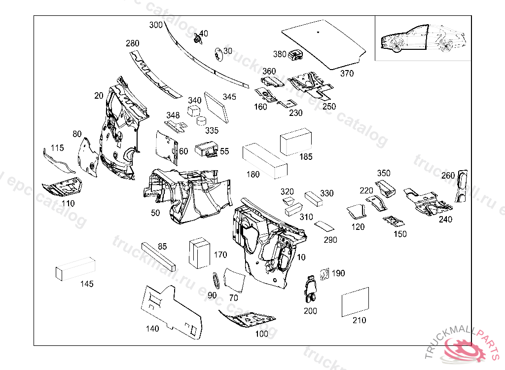 SOUNDPROOFING FIRE WALL,RIGHT, FIRST EXHAUST STOCK OF OLD PARTS UP TO IDENT NO. A 11333920131104, Replaced By: A2126821628