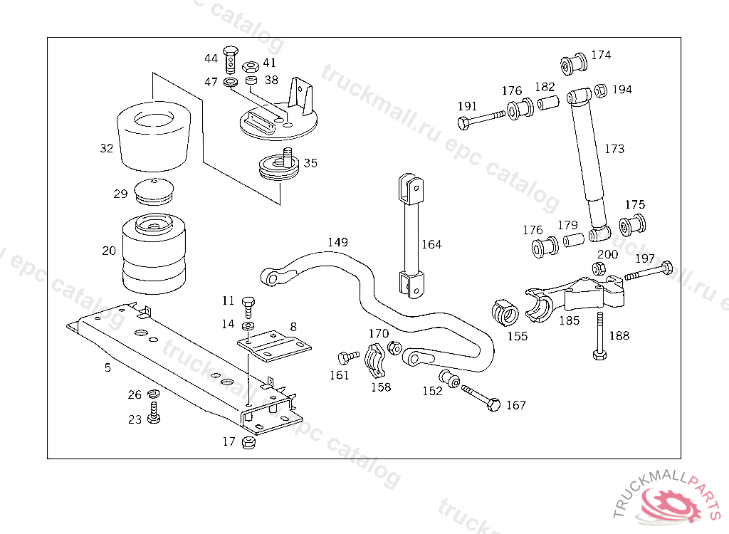 RUBBER MOUNTING TORSION BAR TO AIR-SPRING-BELLOWS SUPPORT