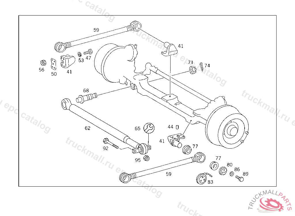 SCREW LONGITUDINAL CONTROL ARM TO BEARING BODY AND TO REAR AXLE