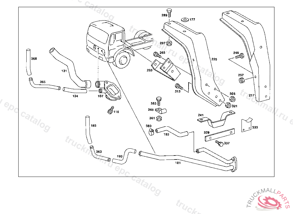 BREATHER PIPE VENTILATION, FROM RADIATOR TO EXPANSION TANK, 415 5 014668 416 5 000515 417 4 972023 FOR USE WITH SHORT MERCEDES-BENZ CAB