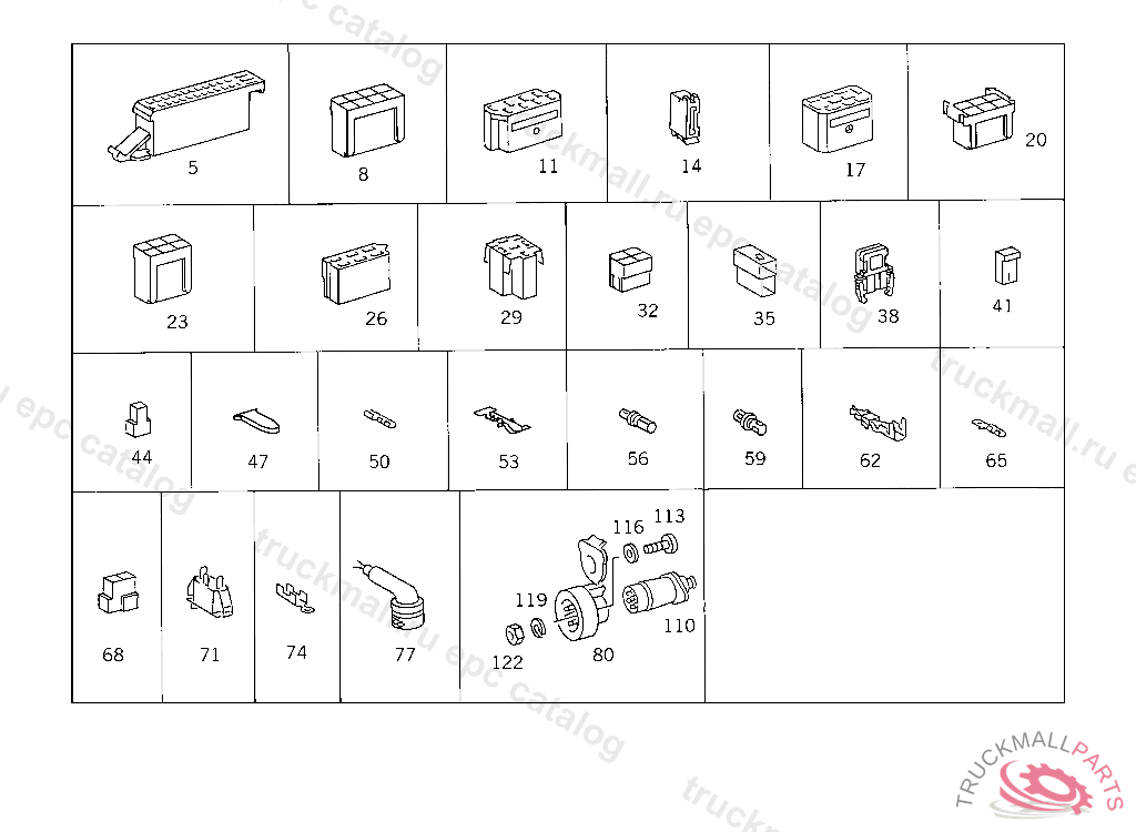 PIN BUSHING HOUSING. PLUG HOUSING FROM CHASSIS/CAB CONNECTION POINT TO TACHOGRAPH