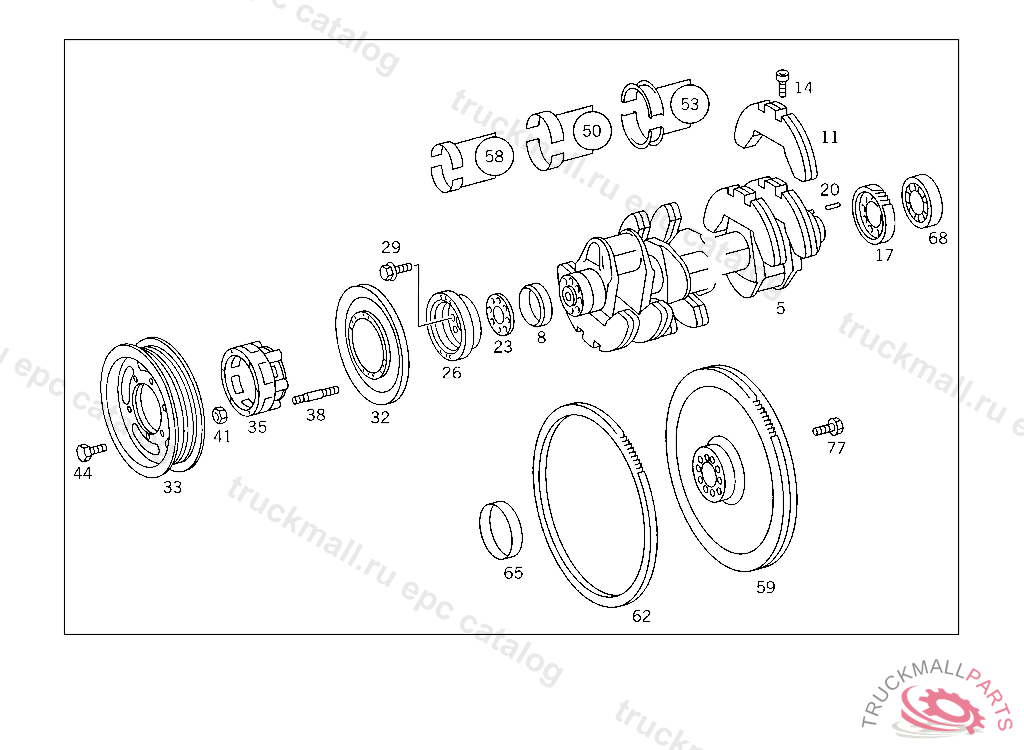 CRANKSHAFT WITH CRANKSHAFT BEARING SHELLS AND CONNECTING ROD BEARING SHELLS,519686 CONNECTING ROD BEARINGS,WIDTH 26.7 PART IS ONLY OR ALSO SUPPLIED AS RECONDITIONED PART