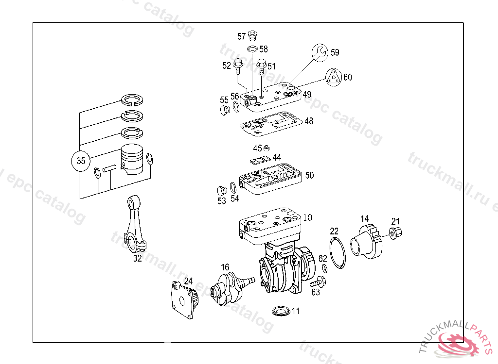 COMPRESSOR ONE-CYLINDER, EXHAUST STOCK OF OLD PARTS UP TO ENGINE 032094 PART IS ONLY OR ALSO SUPPLIED AS RECONDITIONED PART, Replaced By: A4571302315