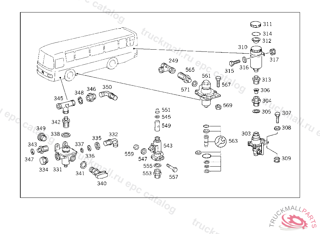 ANGLE DISTRIBUTOR, USED WITH HYDRAULIC BRAKE UP TO CHASSIS 209475 EXCEPT FOR 209273,209446,209461,209465,209471,209474.