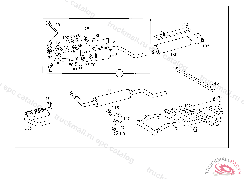 EXHAUST MUFFLER PRE-MUFFLER, FROM IDENT NO. 941506 ALSO INSTALLED ON 899081-941503 ONLY WITH OM601/OM602 ENGINEP 000001 USED FOR EXHAUST SYSTEM WITH PRE-MUFFLER
