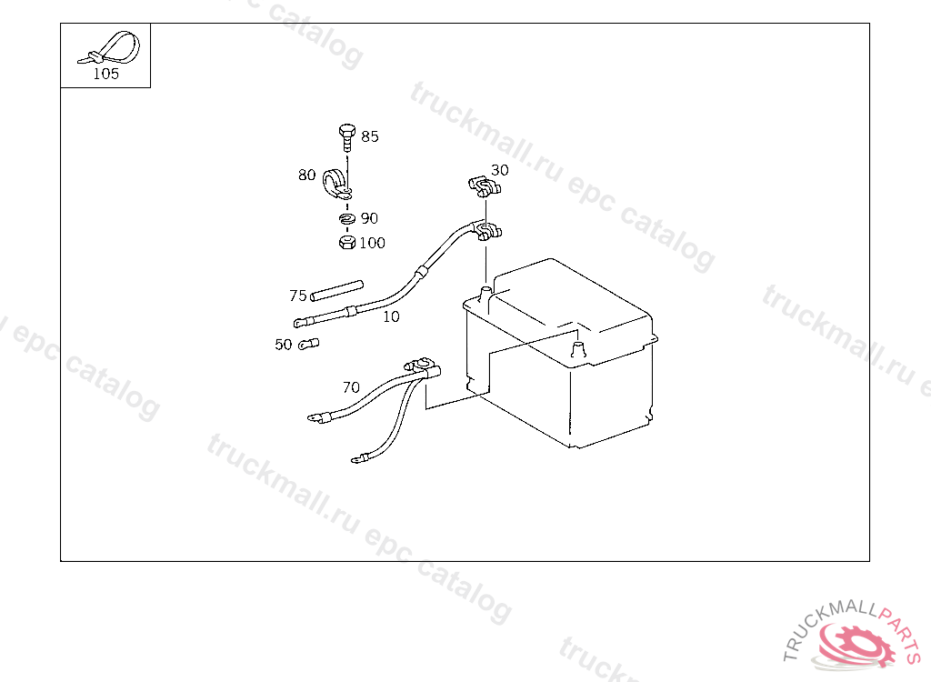 GROUND STRAP FROM BATTERY TO TRANSMISSION, UP TO IDENT NO. 941505 EXCEPT FOR 899081-941503 ONLY WITH OM601/OM602 ENGINE