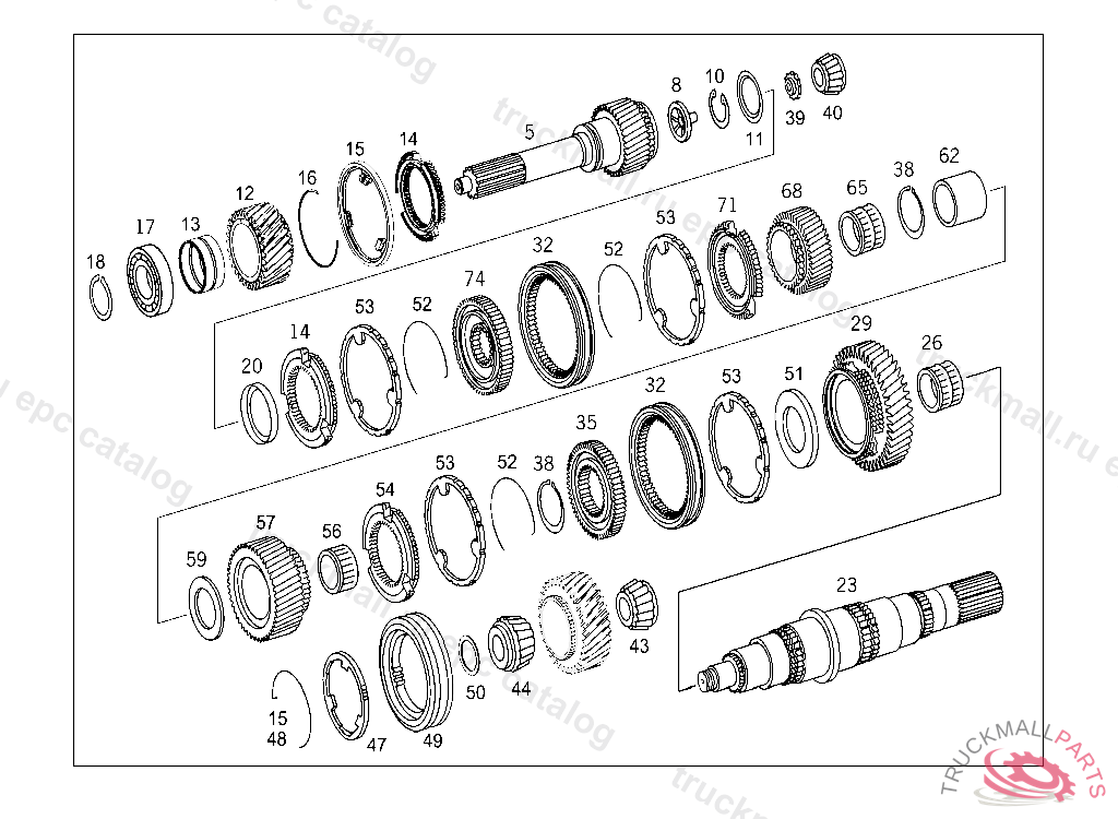 26 TRANSMISSION, SIX-SPEED (EVOBUS) - 150 TRANSMISSION SHAFTS AND GEARS IL. 1