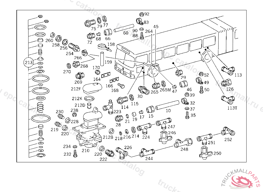 T-FITTING AT HAND BRAKE VALVE, FROM CHASSIS 674068 ALSO INSTALLED ON, 500001-599999,673550,673631,673890,673916-673918,673922,673927 UP TO CHASSIS 872788 EXCEPT FOR, 500033-599999