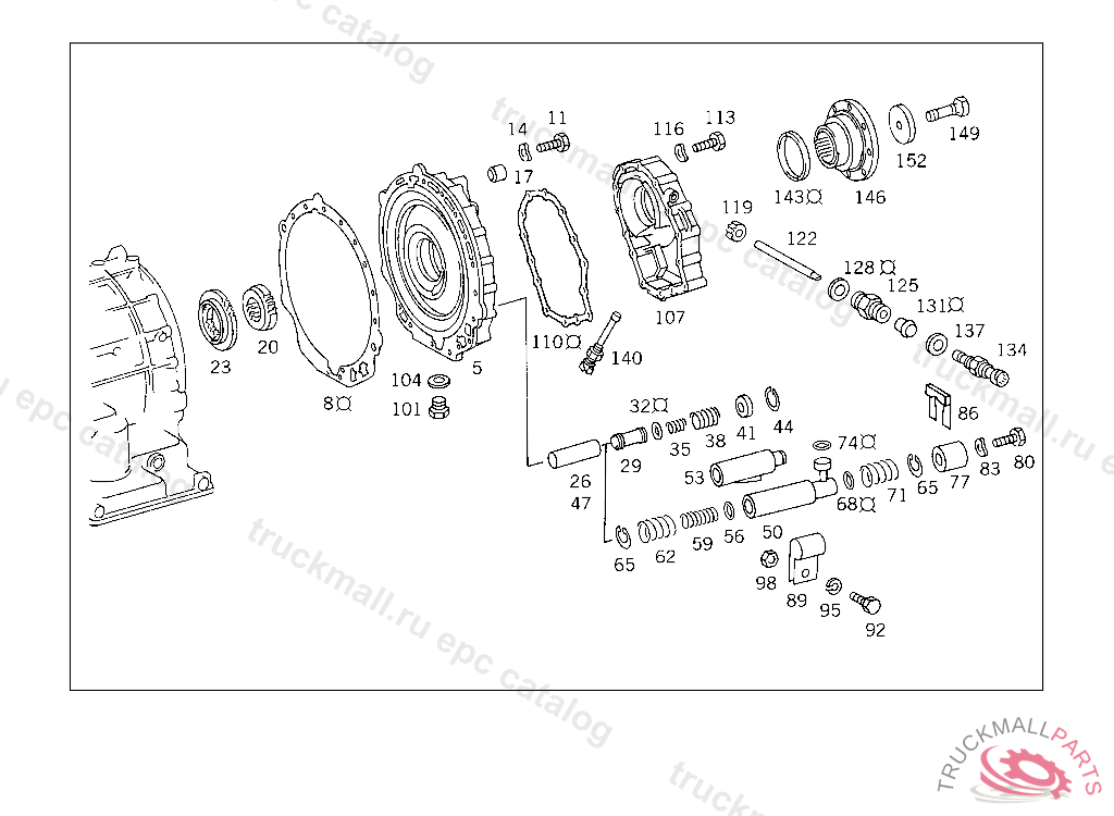 27 MERCEDES-BENZ AUTOMATIC TRANSMISSION - 450 REAR TRANSMISSION CASE,SPEEDOMETER DRIVE,OUTPUT FLANGE
