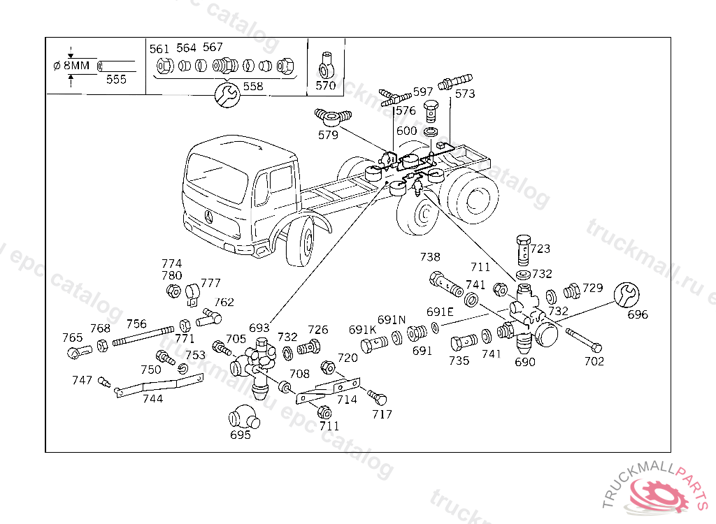 SCREW TRAILER COUPLING TO REAR CROSS MEMBER,5 734466