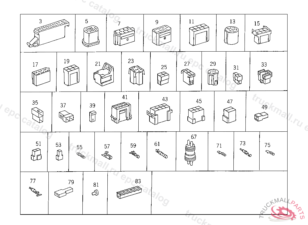 PIN BUSHING HOUSING. PLUG HOUSING FROM CHASSIS/CAB CONNECTION POINT TO TACHOGRAPH