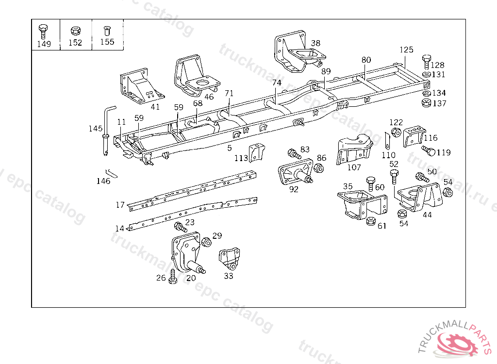 CROSS MEMBER FRONT, ON TRUCKS 10/50 UP TO CHASSIS 145736 ALSO INSTALLED ON SEE FOOTNOTE 7,WITH EXCEPTION OF SEE FOOTNOTE 8,ON TRUCKS 20/60 UP TO C HASSIS 148036 WITH EXCEPTION OF 140555,142078