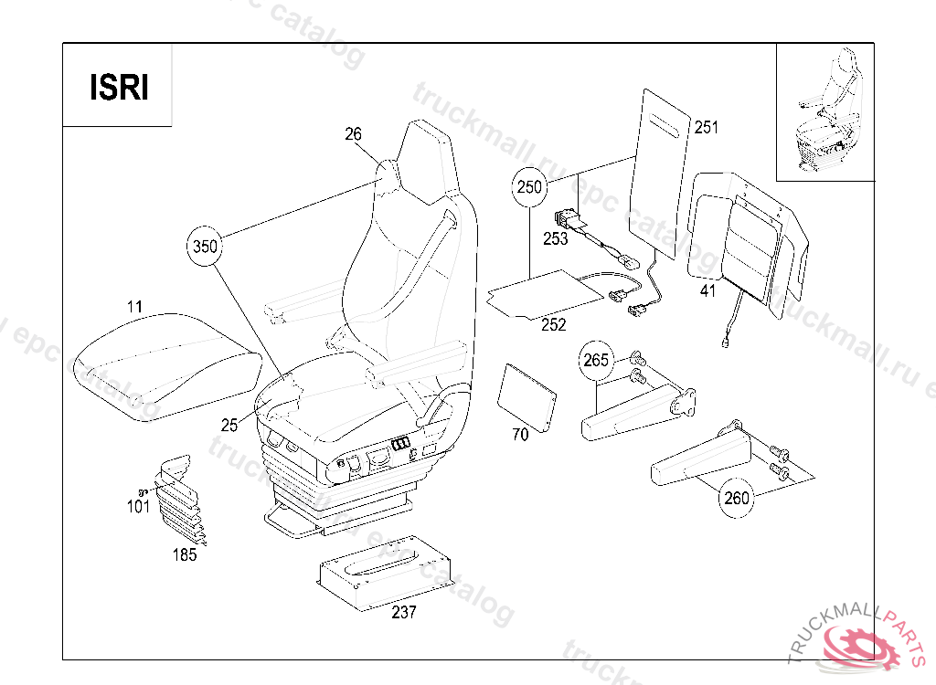 DRIVER SEAT. FRONT SEAT RIGID ISRI6860/885, DETERMINE COVER FABRIC VIA VEDOC "NFC 5117"