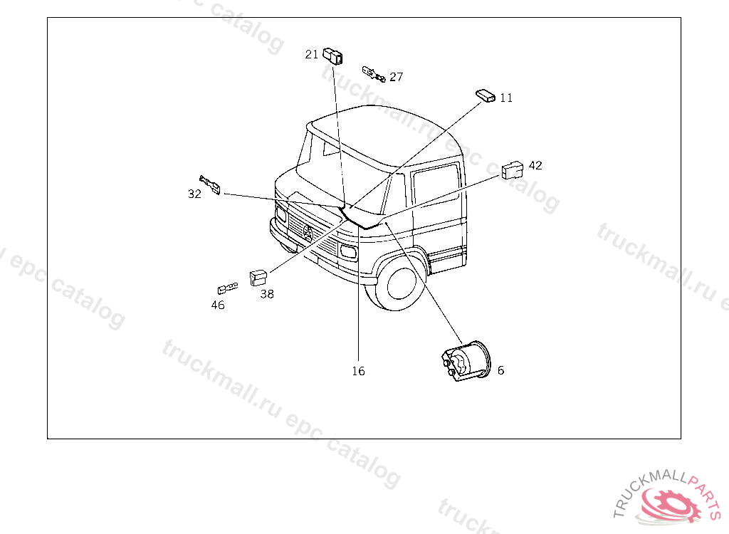 PIN BUSHING HOUSING. PLUG HOUSING FROM CHASSIS/CAB CONNECTION POINT TO TACHOGRAPH