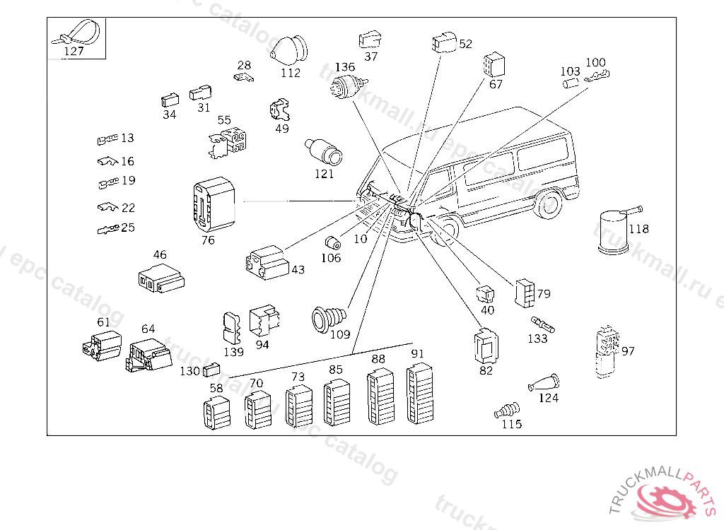 PIN BUSHING HOUSING 4-POLE, UP TO IDENT NO. 076616 EXCEPT FOR 070057,072208,072212,072215,072216,072221,072224,072613,072614,072615.099541