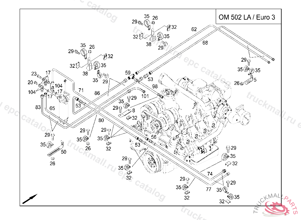 CLAMP DELIVERY AND SUCTION LINES TO ENGINE, FRONT