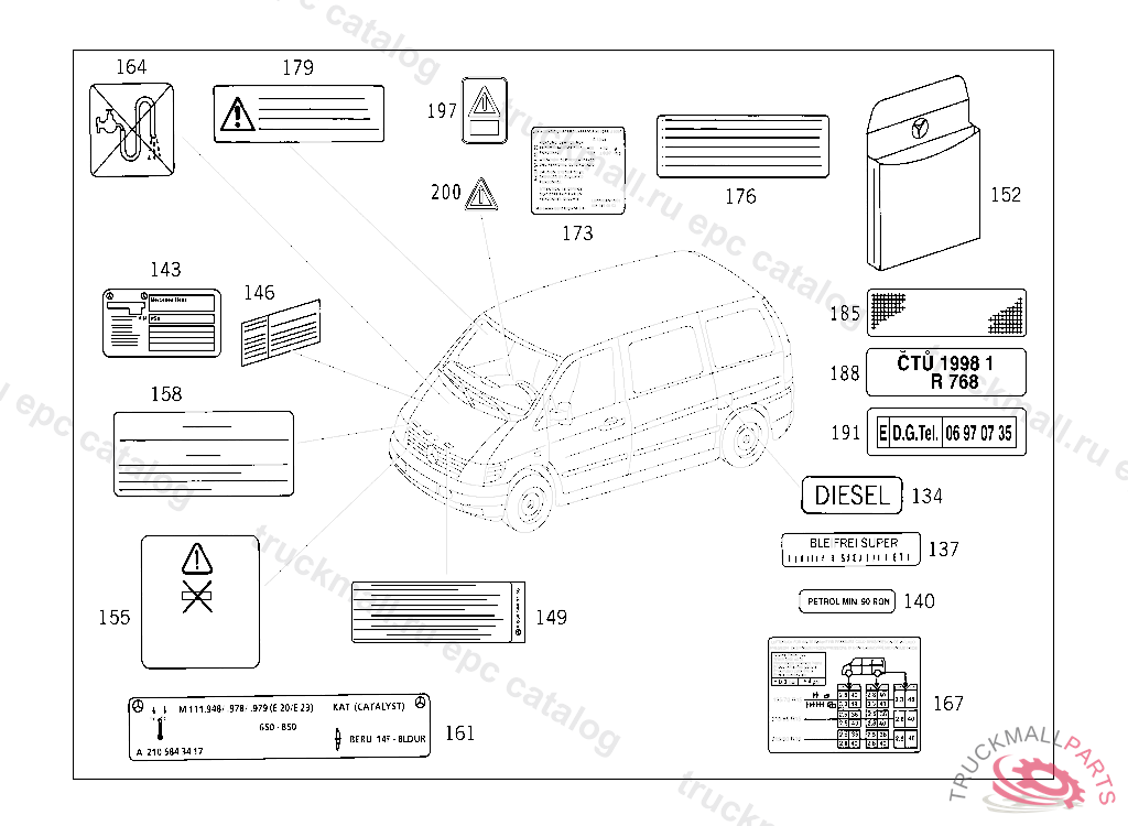GUIDE SIGN REFUELLING PLATE, IN FRENCH, ONLY APPLICABLE TO VEHICLES EQUIPPED WITH CATALYTIC CONVERTER A 519702 F 647263