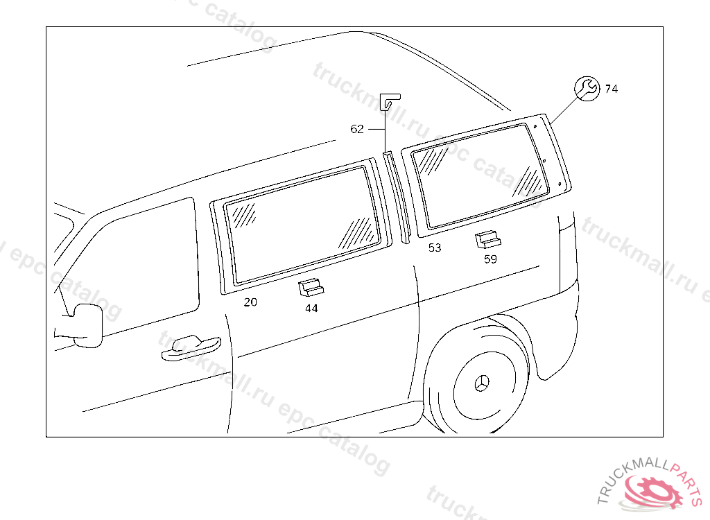 GLASS PANE RIGHT, COLORLESS, ORDER ADDITIONALLY: 1X 638 671 00 36