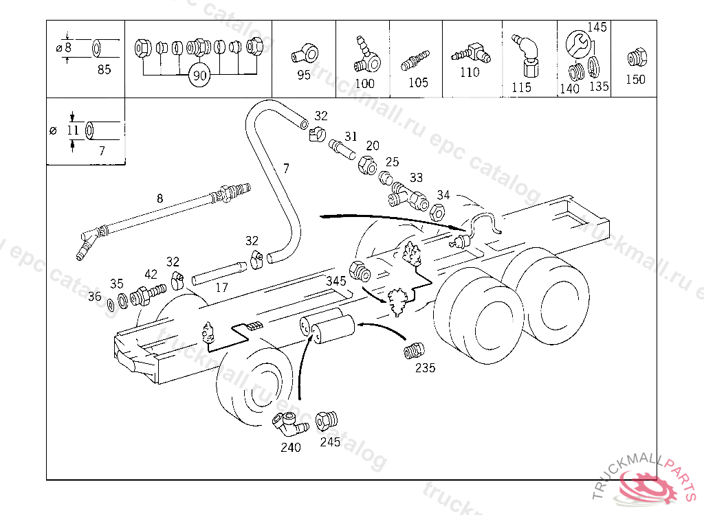 HOSE FRONT AND REAR AXLE BRAKE CYLINDERS 11 MM