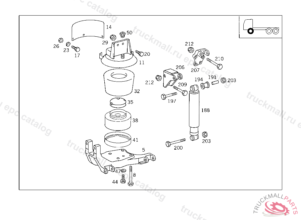 SHOCK ABSORBER , FIRST EXHAUST STOCK OF OLD PARTS UP TO IDENT NO. K 206598, Replaced By: A0063234200