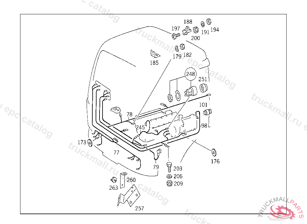 ELECTRIC CABLE FROM MODULE "M" TO ENGINE PLUG CONNECTION, THIS CABLE HARNESS IS A COMPONENT OF FRAME MOUNTED CABLE HARNESS ASSEMBLY AND CAN BE MADE AVAILABLE AS A SPARE ATTENTION: WHEN PLACING ORDERS, PLEASE QUOTE VEHICLE IDENT NO. ONLY IF FRAME MOUNTED CABLE HARNESS IS REQUIRED AS AN ASSEMBLYK 251256