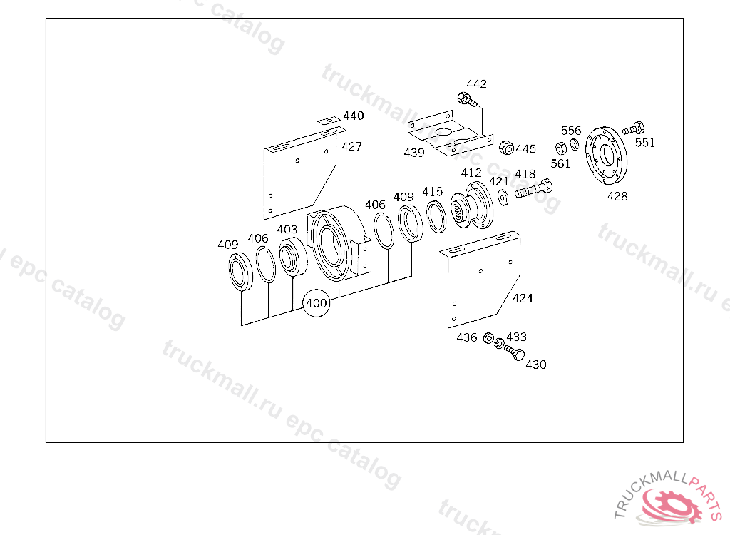 PROTECTIVE CAP FOLLOWER FLANGE, INTERMEDIATE BEARING, BALL BEARING IN RUBBER SEAT