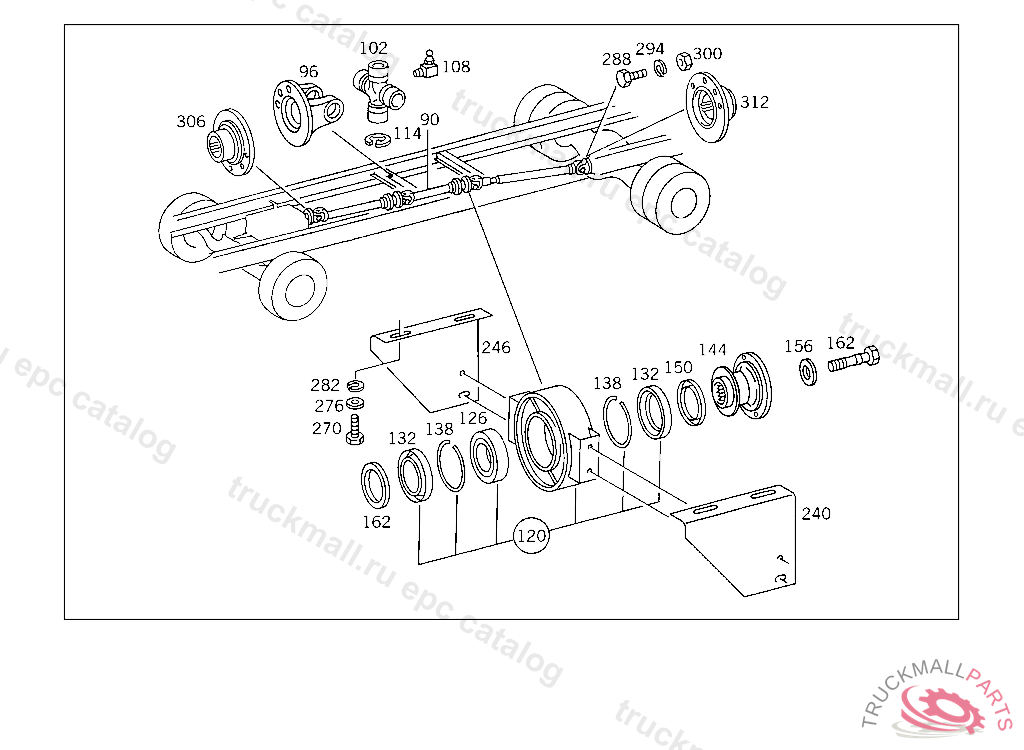 SPACER WASHER PROPELLER SHAFT BEARING, INTERMEDIATE BEARING, BALL BEARING IN RUBBER SEAT