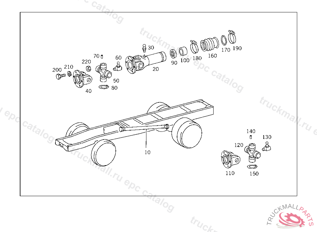 PROPELLER SHAFT FROM TRANSMISSION TO REAR AXLE 1970 MM, PART IS ONLY OR ALSO SUPPLIED AS RECONDITIONED PART