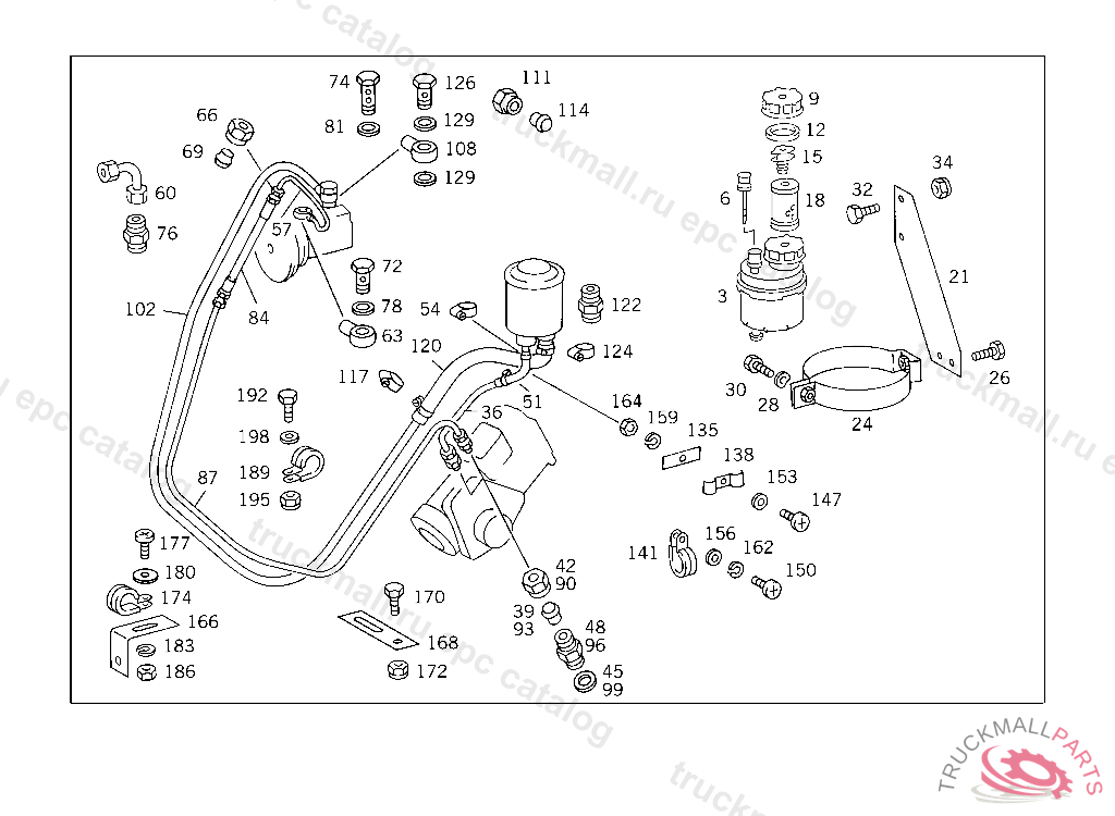 CLAMP DELIVERY AND SUCTION LINES TO ENGINE, FRONT