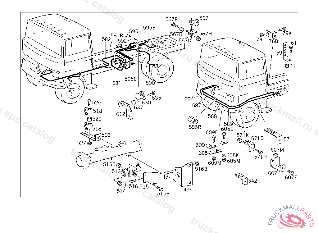 LINE FROM TEST CONNECTION TO RIGHT WHEEL CYLINDER 700 MM,4 644237