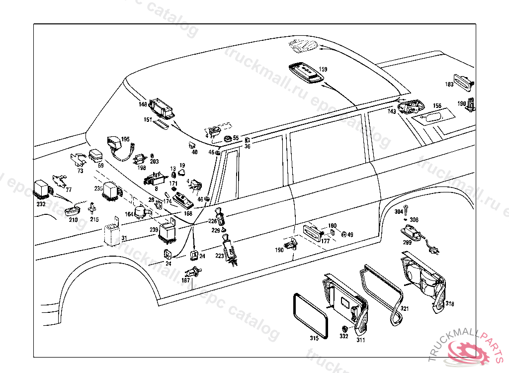 LICENSE PLATE LAMP LUGGAGE COMPARTMENT LIGHTING, UP TO CHASSIS: 113.042 012466, EXCEPT FOR: 012343-012352,012354-012366,012369-012376,012378-012387,012389-012412,012414-012422,012424-012444. UP TO CHASSIS: 111.021,023 082990 112.021,023 008909 UP TO CHASSIS: 110.010 130557 110.110 225647 111.010,012,014 069692