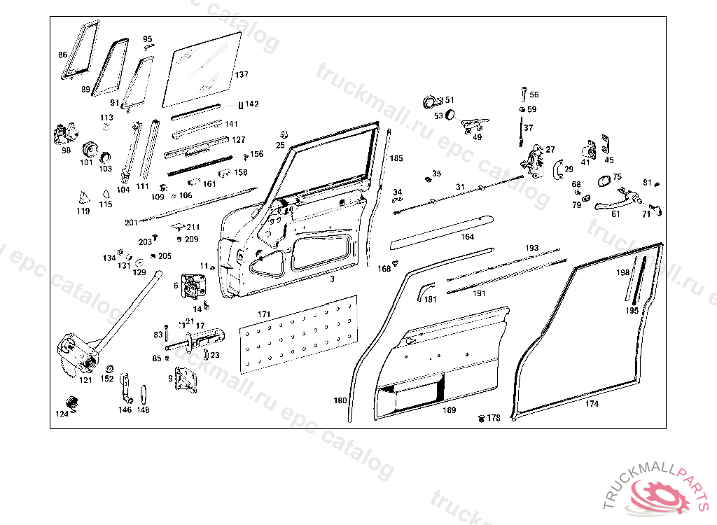PANELLING RIGHT FRONT DOOR, STATE COLOR NUMBER WHEN ORDERING UP TO CHASSIS: 110.000,001,010 188149 110.002,003,005,011 031989 110.100,101,104,110 352118 111.010 106622