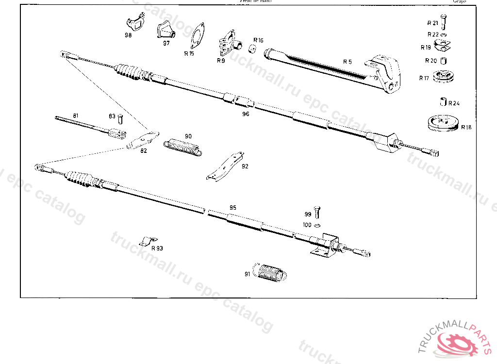 GUIDE CABLE PULLEY CABLE PULLEYS TO SUPPORT, 012 UP TO CHASSIS 076355 NOT FOR USE WITH MERCEDES-BENZ HYDRAULIC-AUTOMATIC CLUTCH